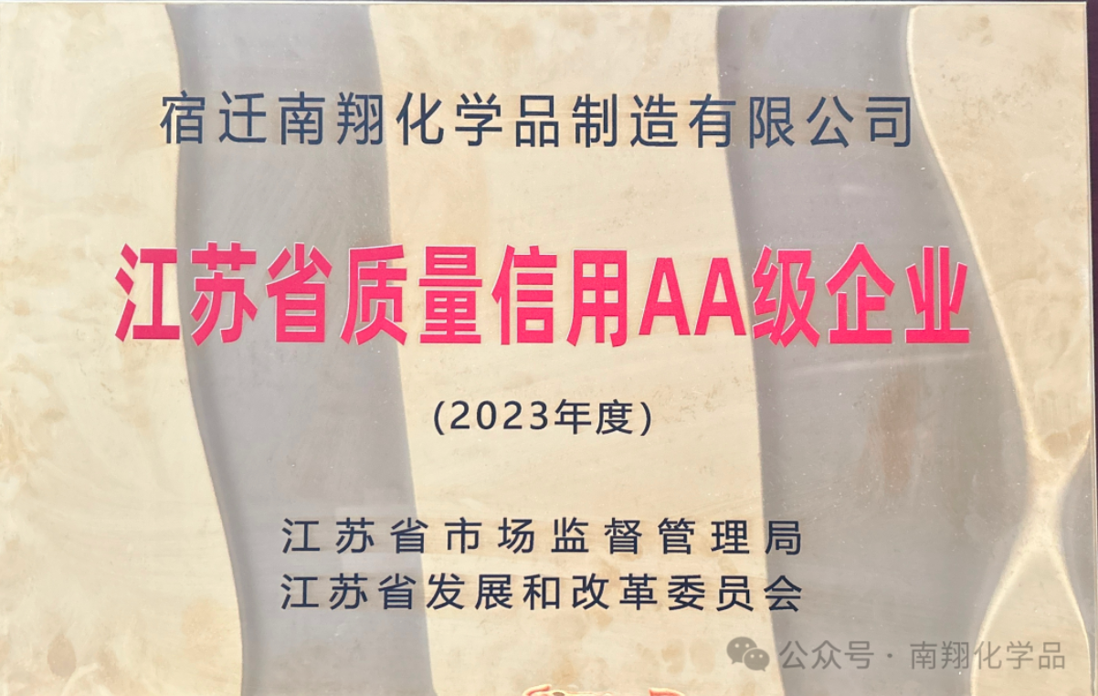 恭喜南翔化学品荣获2023年度江苏省质量信用AA级企业!这一荣誉表明南翔化学品在质量管理、产品质量、企业信誉等方面均表现出色,得到了权威机构的认可。也进一步证明了南翔化学品一贯秉持的质量第一、用户至上的经营理念,并为之不断努力的结果。南翔化学品会继续保持这一优秀成绩,为客户提供更优质、更可靠的产品和服务,为行业发展做出更大的贡献!